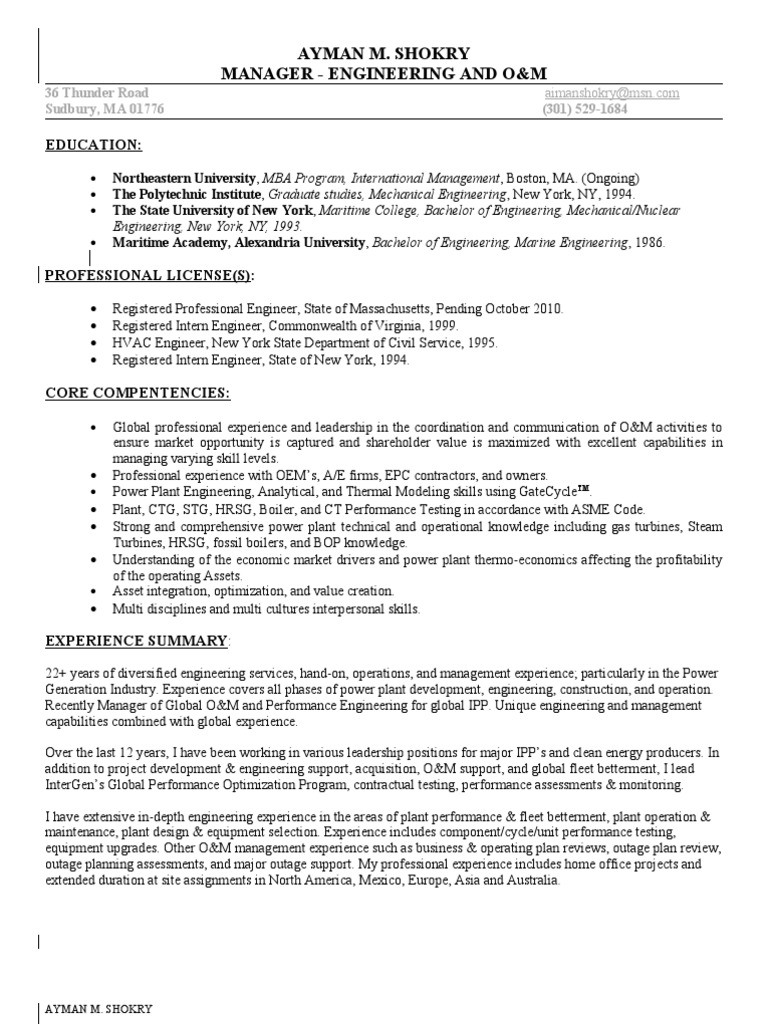 Ams E And O M Power Resume 1 March 2010 Pdf Steam Boiler